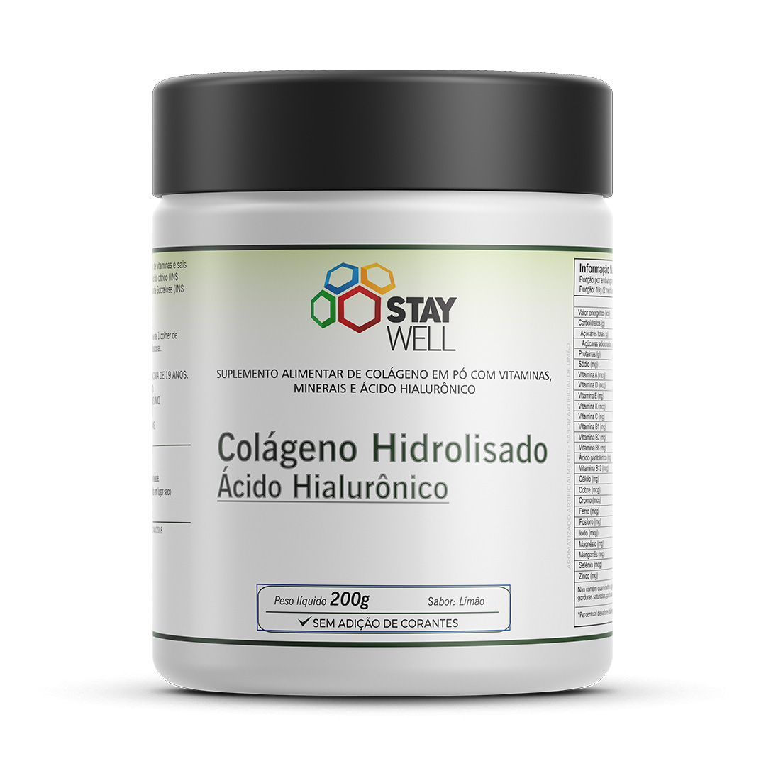 O Colágeno Hidrolisado com Ácido Hialurônico Stay Well é uma proteína fundamental encontrada no organismo, responsável pela estrutura e sustentação da pele, ossos, articulações, tendões e outros tecidos. Ele forma uma rede de fibras que dá firmeza e elasticidade aos tecidos.