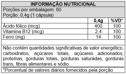 Auxiliar no tratamento da anemia, o Suplemento de Ferro, Ácido Fólico e Vitamina B12 atua no fortalecimento do sistema imunológico, aumentando o teor de hemoglobina das células vermelhas do sangue. Mantém as células sanguíneas reguladas e o sistema nervoso saudável.