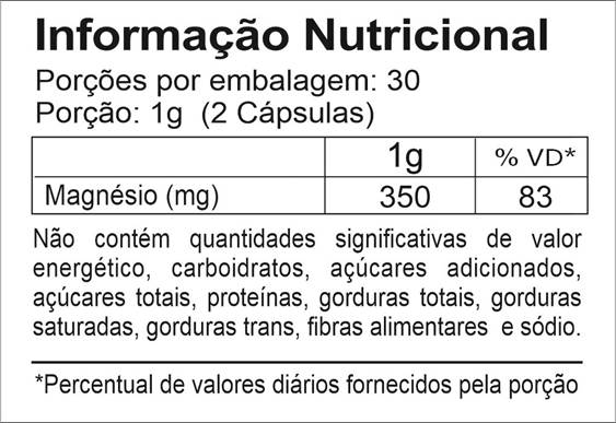 Bisglicinato de Magnésio, amido,antiumectante estearato de magnésio e cápsula (gelatina).