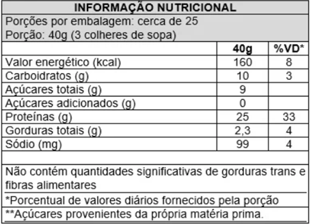 SABOR PAÇOCA: Proteína concentrada do soro do leite, proteína isolada do soro do leite,cacau em pó,aromatizante e edulcorante sucralose (INS 955).