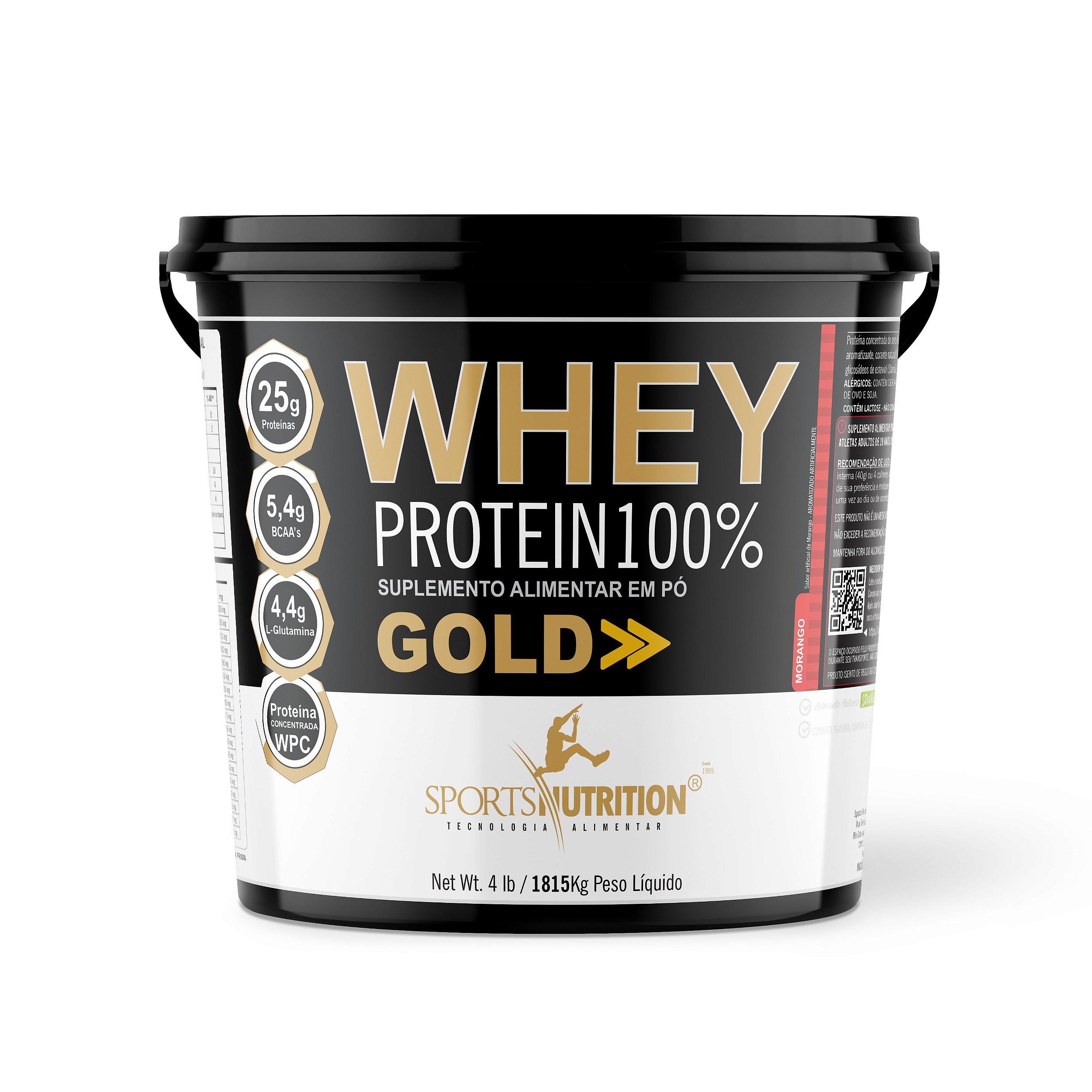 Whey Protein 100% Gold – Sports Nutrition obtida a partir do processo de filtração e microfiltração do soro do leite bovino Classificado como concentrado 80%.